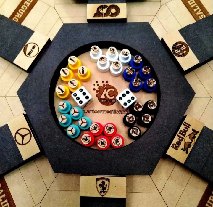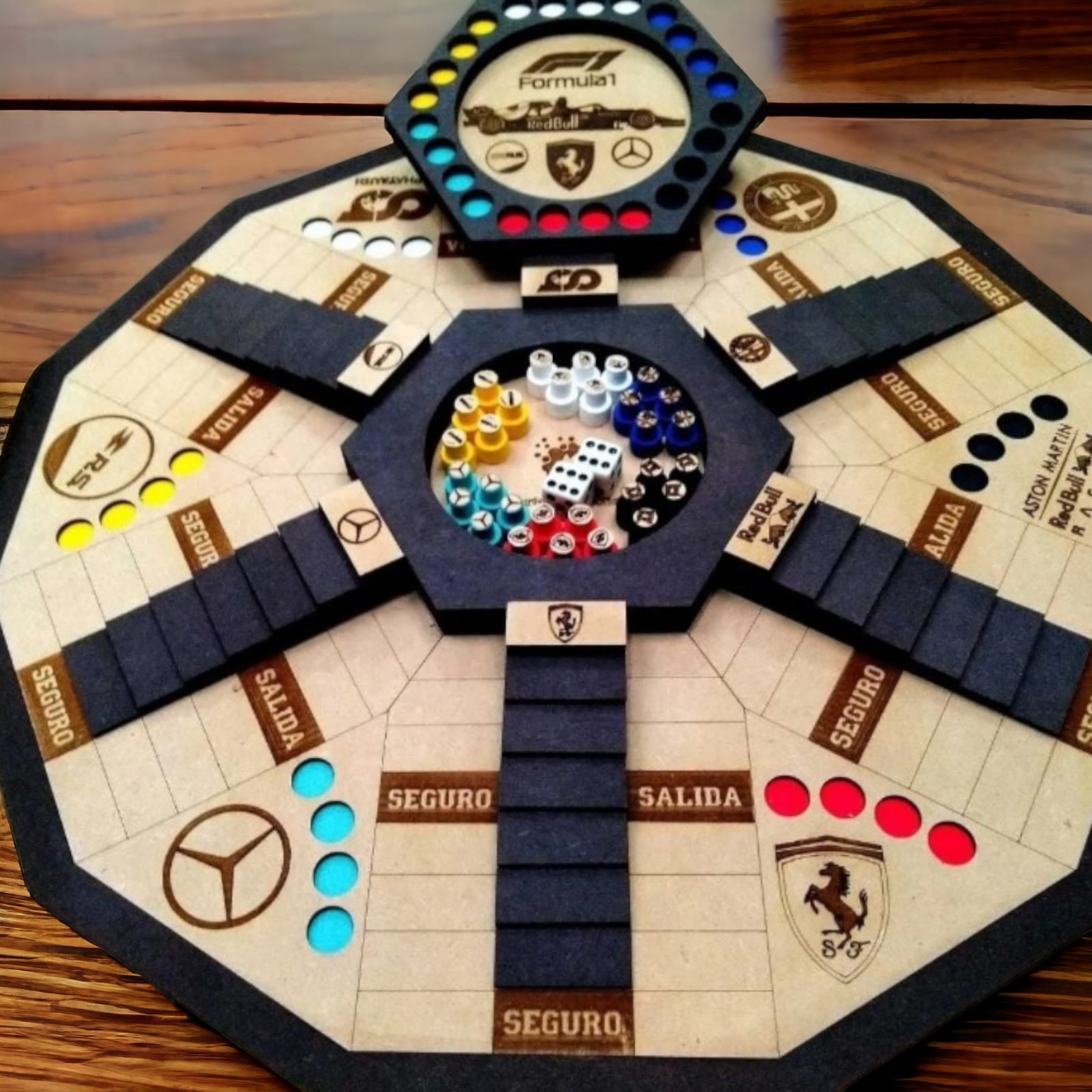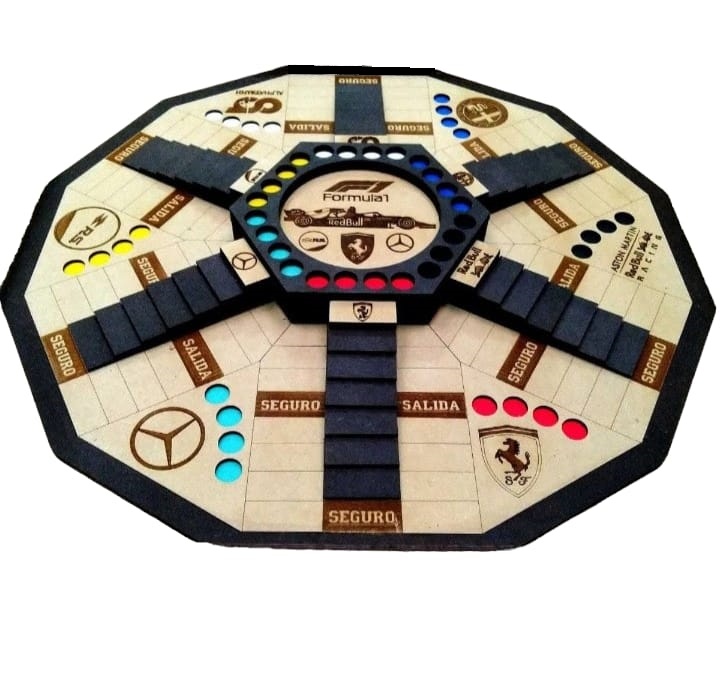 El parques 3D de 6 puestos en MDF de alta densidad, que incluye fichas en MDF y 1 ficha de repuesto por cada puesto. Además, viene en una caja de cartón resistente y también incluye un par de dados.